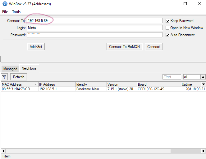 You will see effect like below. 192.168.5.89 is not available in winbox